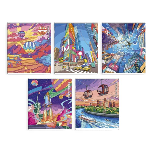 | Тетрадь, 48 л, клетка, арт. 63163 10 МИР В ЯРКИХ КРАСКАХ мягкий переплёт (2 скобы), мелованный картон 190 г/м², ламинация "софт-тач" вельвет Упаковка Ассорти |