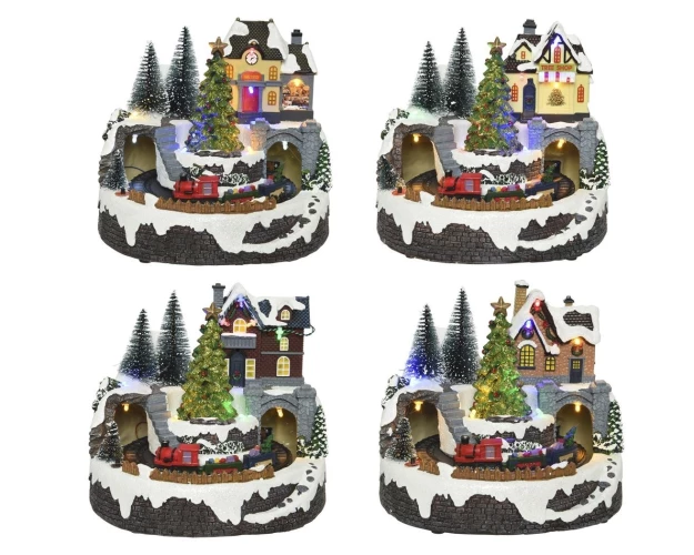 Композиция с подсветкой. Для использования только в помещении. В рождественском интерьере должно быть как можно больше ярких огоньков! Эта композиция со светодиодами отлично подойдет. Она изображает классическую предпраздничную картину. Для работы требуются 3 батарейки типа АА. Товар в ассортименте.