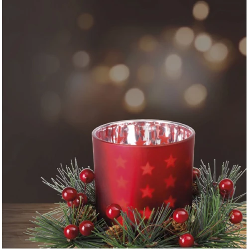 Стеклянный Подсвечник "Праздничный Венок", 7x8.4см, красный, Kaemingk